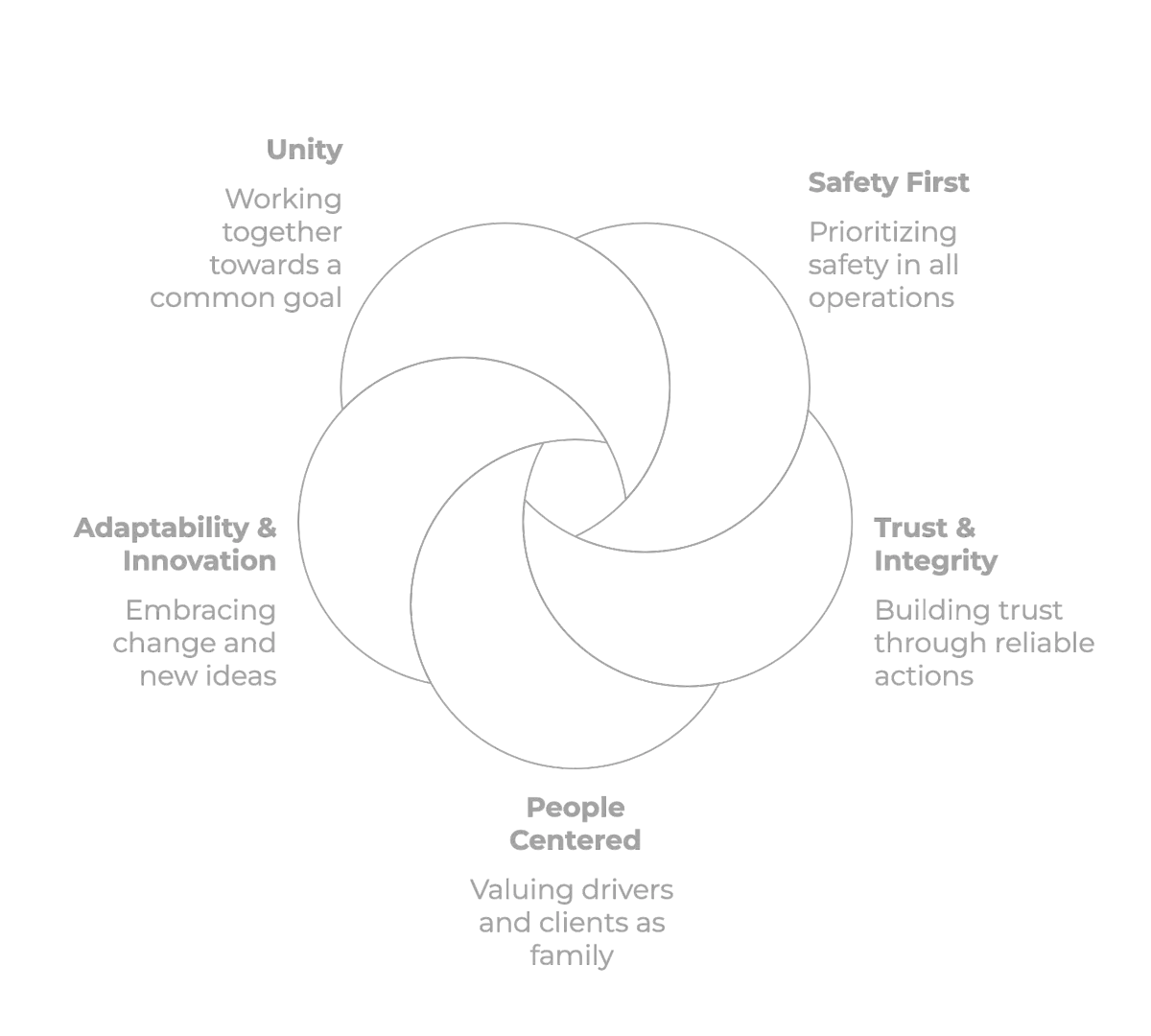 To provide reliable transportation solutions that empower clients, protect drivers, and fuel long-term success for every partner we serve.